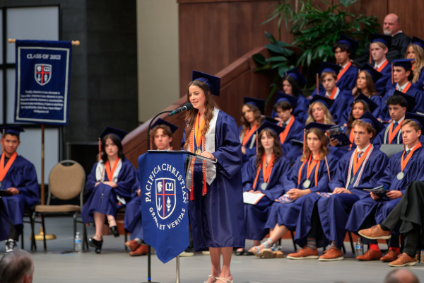 Valedictorian, Aubrey Callaghan gives a student address to her fellow graduates from the Class of 2024.