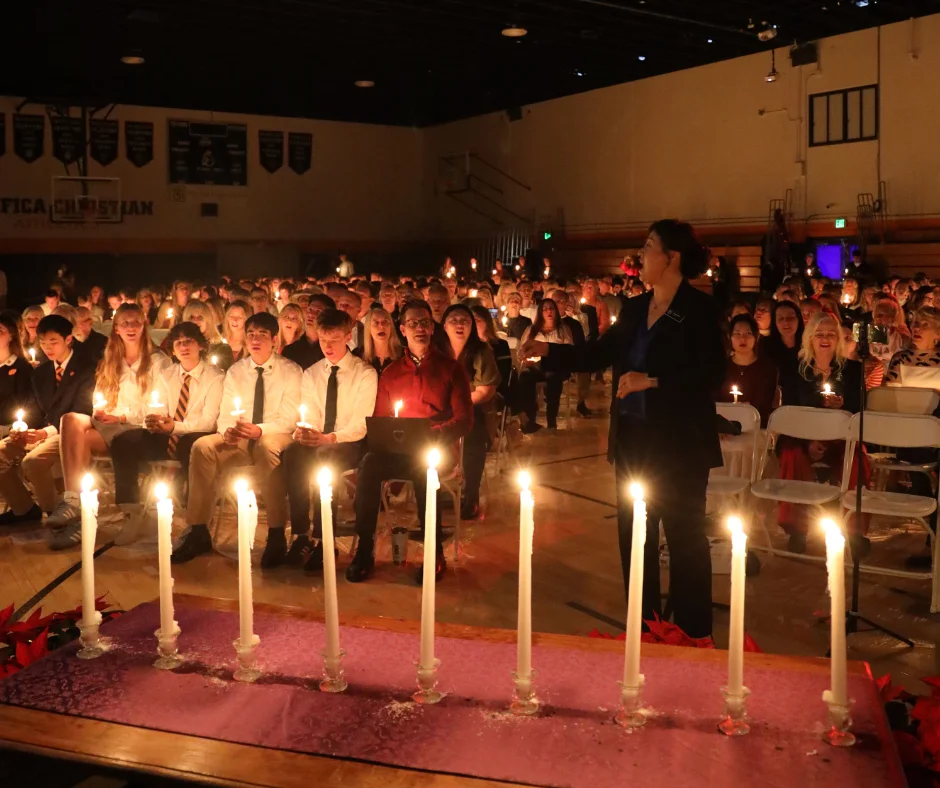 December hosts two triton traditions! At our Service of Lessons & Carols. Our students read aloud nine cherished lessons of the Christmas story to the audience, followed by the singing of carols alongside the Pacifica choir. Later at the Silent Night Basketball Games, all is quiet in the stands until Pacifica Christian's 7th point where the crowd goes wild.