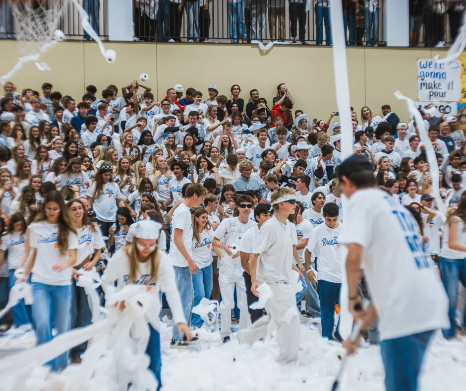 One of our most attended and awaited games of the year—Bring the Rain! Triton Nation stormed the Freed Center at Vanguard University as one rising tide, dressed in all-white and armed with rolls upon rolls of toilet paper to shower the court at our boys first 3 point shot.